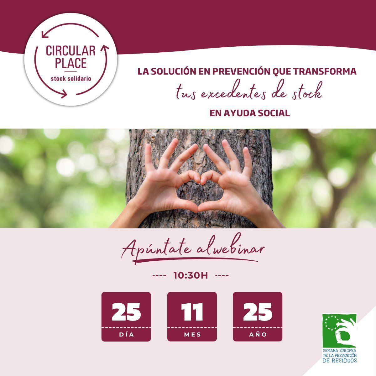 El proyecto 𝗖𝗜𝗥𝗖𝗨𝗟𝗔𝗥 𝗣𝗟𝗔𝗖𝗘 (el marketplace para la donación con fines sociales de excedentes de stock no vendidos con el objetivo de prevenir la generación de residuos) continúa su momento de éxitos a lo largo del año en curso organizando un 𝘄𝗲𝗯𝗶𝗻𝗮𝗿 𝗲𝗹 𝗽𝗿𝗼́𝘅𝗶𝗺𝗼 𝗺𝗮𝗿𝘁𝗲𝘀 𝟮𝟱 𝗱𝗲 𝗻𝗼𝘃𝗶𝗲𝗺𝗯𝗿𝗲 𝗮 𝗹𝗮𝘀 𝟭𝟬:𝟯𝟬𝗵 con motivo de 𝗦𝗲𝗺𝗮𝗻𝗮…
