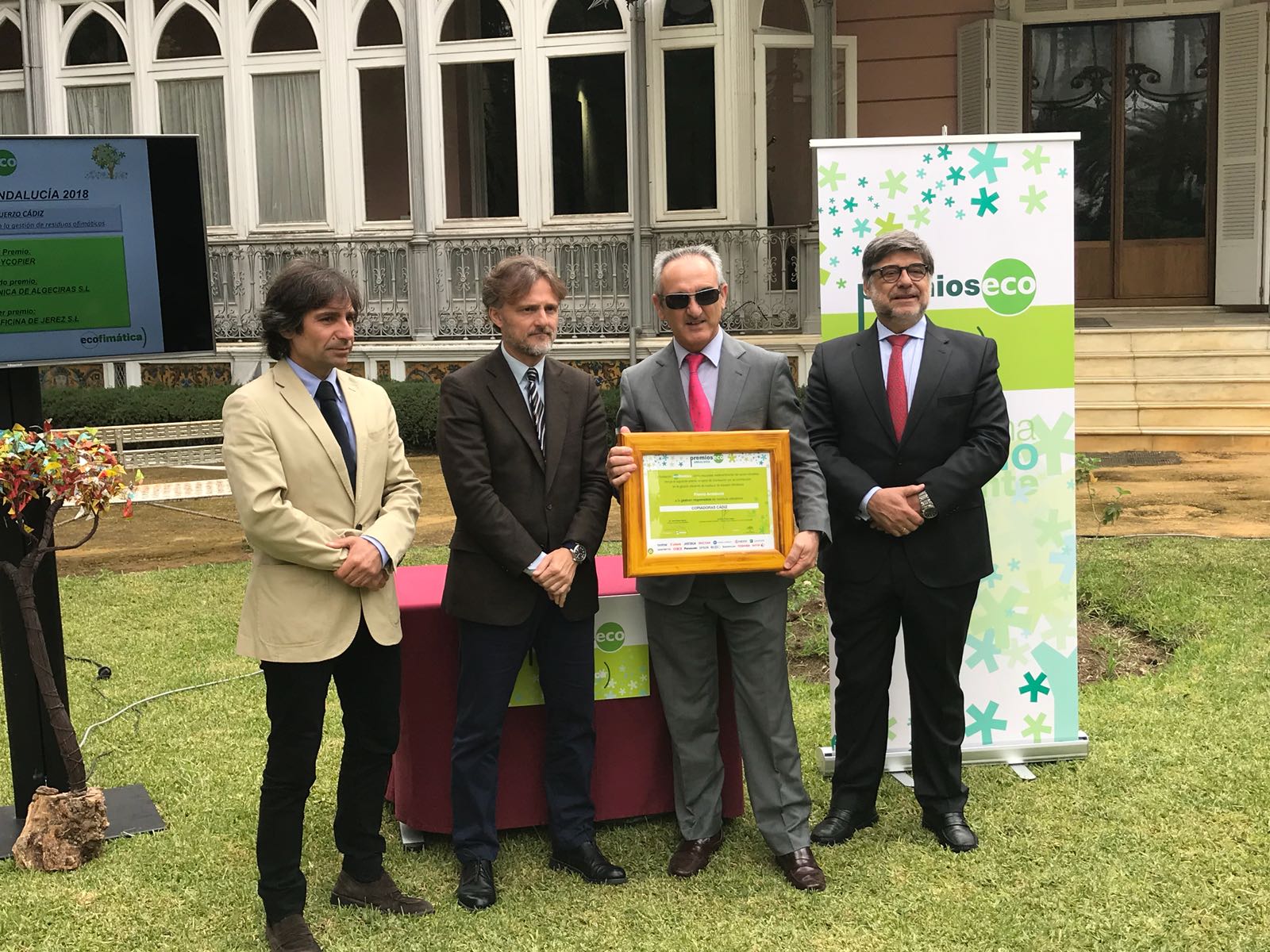 La entrega de los I Premios ECO Andalucía ha contado con la asistencia de José Fiscal López, consejero de Medio Ambiente y Ordenación del Territorio de la Junta de Andalucía, y José Pérez, consejero delegado de Recyclia, entidad en la que está integrada Ecofimática.